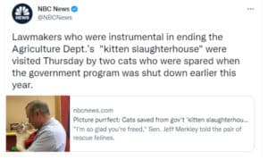 When White Coat Waste Project shut down the USDA’s kitten slaughterhouse earlier this year, the agency committed to adopting out the 14 cats who remained in the shuttered lab. Now, some of the lucky survivors got to meet the lawmakers who helped win their freedom after years locked in a federal laboratory.
