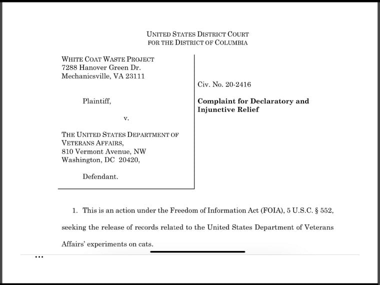 WCW just filed a federal lawsuit against the Dept. of Veterans Affairs, demanding public records about taxpayer-funded kitten experiments we uncovered in a brand-new investigation.