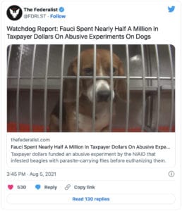 There’s literally no excuse for Fauci to waste more than $400,000 of your tax dollars on abusing dogs.