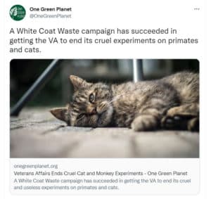 This is just the latest victory in our effort to find, expose and defund all of the VA’s cat experimentation. Earlier this year, we shut down invasive and deadly brain experiments on kittens at the Los Angeles VA.