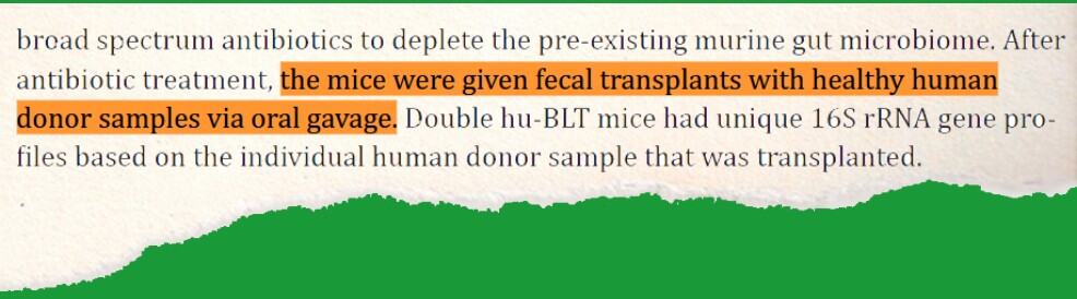 In one of the ‘crappiest’ Fauci-funded experiments we’ve ever discovered, “double humanized” BLT mice “were given fecal transplants with healthy human donor samples via oral gavage.”