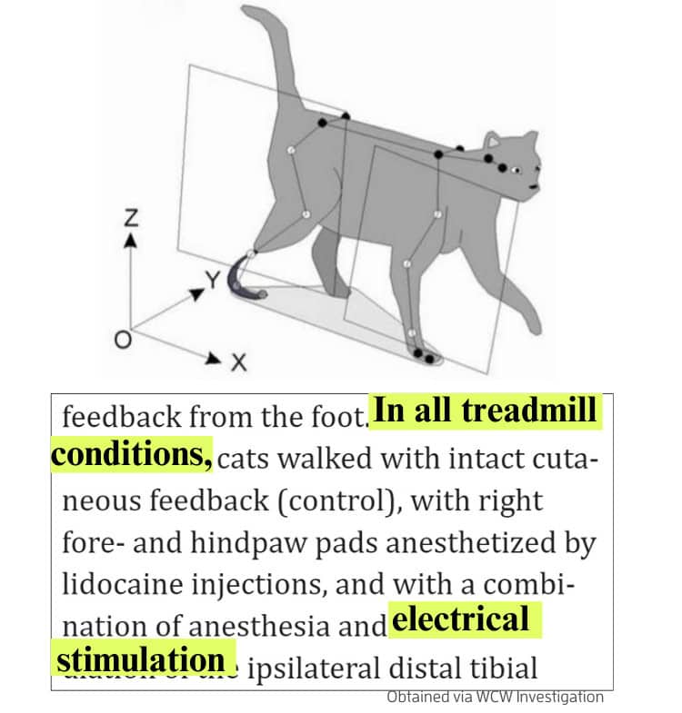 Now, WCW’s newest investigation revealed that Georgia Tech and Russian government labs have mutilated cats and forced them to perform locomotion tasks on multiple occasions, using multi-millions of taxpayer dollars to do so.