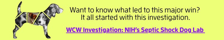 Read details of the NIH’s Septic Shock Dog Lab, a WCW Investigation