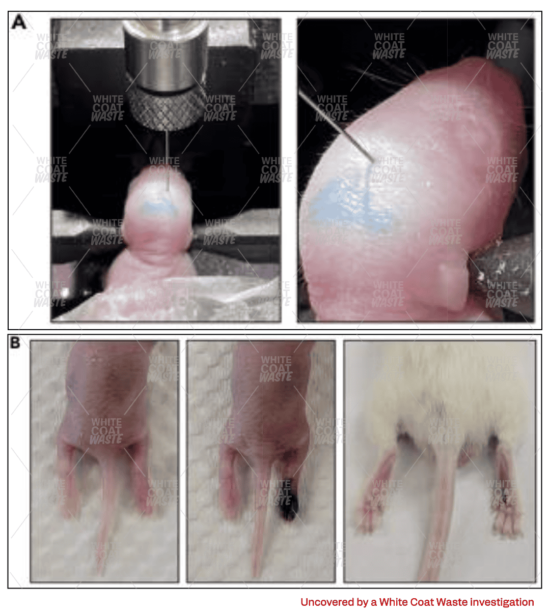 WCW exposed how NIH-funded experimenters implanted tiny fingers from 18-week-old human fetuses into the backs of 5-day-old mice. Four weeks after implantation, the taxpayer-funded lab broke the fingers and left them, fractured, on the baby mice for another two weeks.