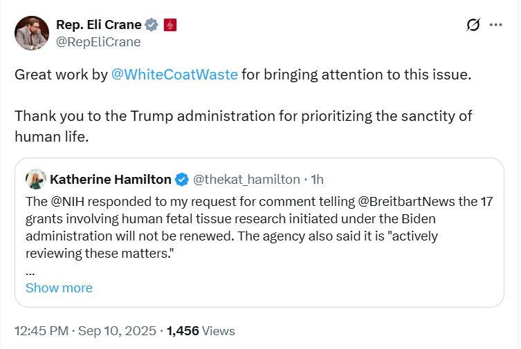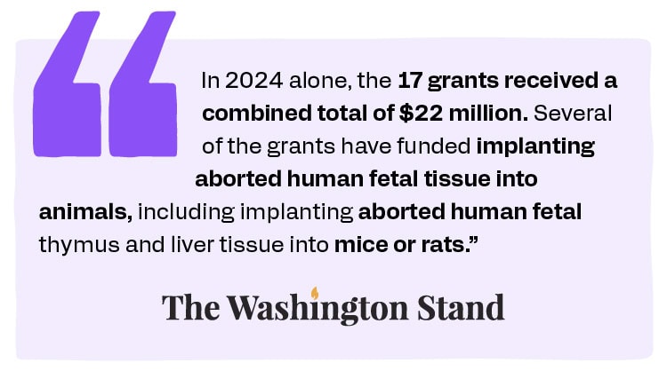 Less than a day after WCW’s new investigation exposing active National Institutes of Health funding for wasteful experiments that implanted body parts from aborted human fetuses into lab animals, the NIH responded and announced, “The referenced grants, initiated under the Biden administration, will not be renewed.”