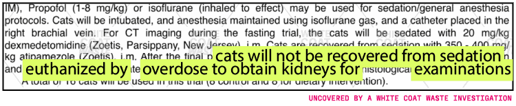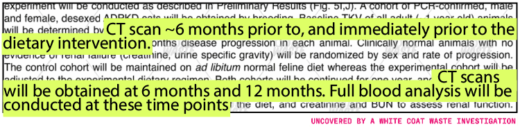 Kittens were subjected to an experimental diet at just a few weeks old and underwent repeated CT scans, blood draws, and urine tests to assess kidney function. Adverse effects of this diet are widespread, including diarrhea, gastric distress, infection, inflammation, and hematomas.