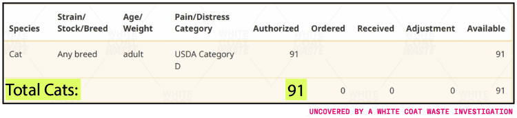 UMC’s records show that these donor cats were at risk of suffering side effects, including anemia and dangerously low blood levels. After spending up to two years in UMC’s lab, these cats could have been killed if deemed “medically necessary,” rather than freed to loving homes.