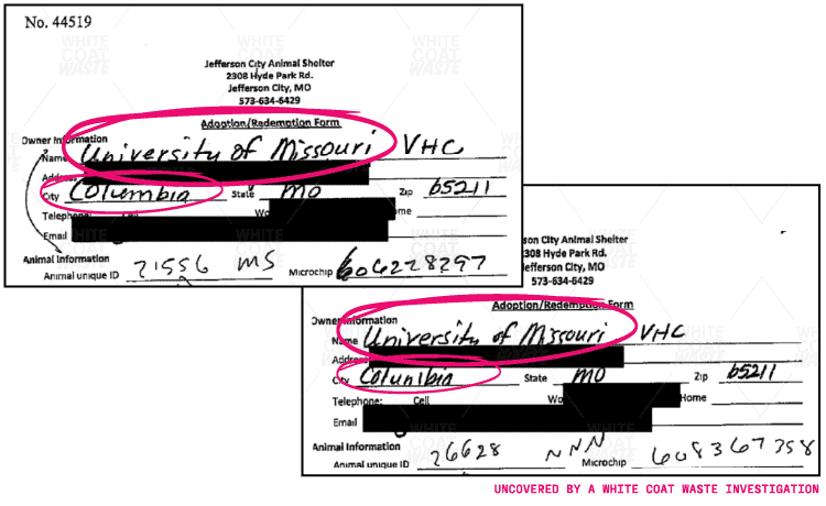 Documents obtained by WCW also reveal that UMC’s labs recently maintained a colony of cats to abuse as blood donors, up to 15 of whom were homeless cats acquired from Jefferson City’s public animal shelter. Records show that the shelter cats abused by UMC were microchipped, meaning they were likely lost or abandoned pets.