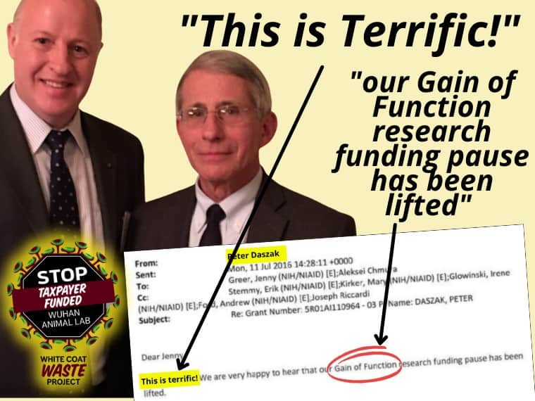 In a shocking new revelation, discovered by the White Coat Waste Project (WCW) through Freedom of Information Act requests, Dr. Fauci’s NIAID staffers raised concerns that EcoHealth Alliance’s proposed experiments...